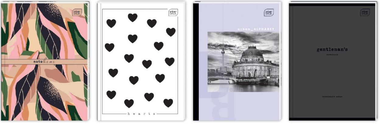 Brulion B5 w kratkę, oprawa półtwarda, 96 kartek, mix wzorów. 5 sztuk w opakowaniu zbiorczym. Producent Interdruk.