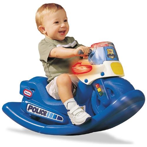 Bujak - motocykl policyjny z dźwiękami silnika, syreną i światłami.
