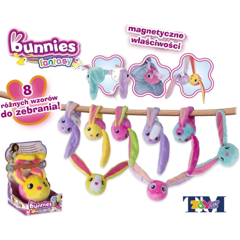 Słodkie króliczki Bunnies zapraszają do zabawy! Dzięki magnetycznym właściwościom możesz łączyć je na różne sposoby :uszkami, buźkami i ogonkami! Zaczep króliczki gdzie tylko zechcesz - do plecaka, spodni, na rękę, włosy i zbierz całą kolekcję! Dla dzieci w wieku od 12 miesięcy