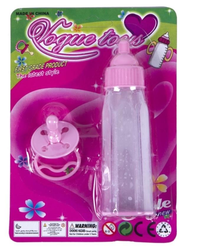 Magiczna butelka do karmienia bobasa wraz z cumelkiem, po przechyleniu butelki płyn z niej znika.