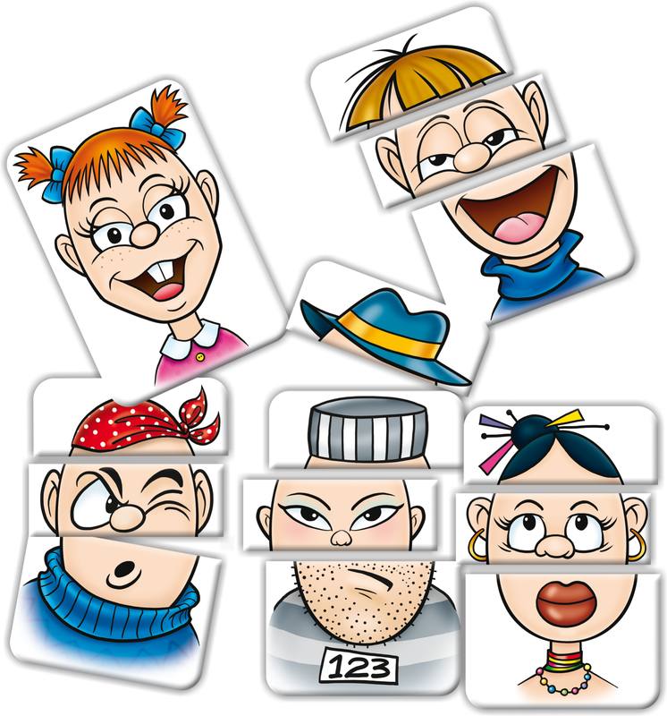 Niekoniecznie pasujące do siebie części twarzy wyrażające różne emocje, z pewnością rozbawią i zaciekawią maluszka. Ilość elementów gry gwarantują zabawę, która szybko się nie znudzi, ponieważ istnieje ponad 5 832 możliwości ułożenia różnych, najdziwniejszych min. Dzięki takiej zabawie maluch nauczy się rozróżniać emocje, odczytywać je, rozumieć nie tylko swoje nastroje, ale także innych otaczających go ludzi. Dodatkowym atutem gry jest również jej walor humorystyczny.