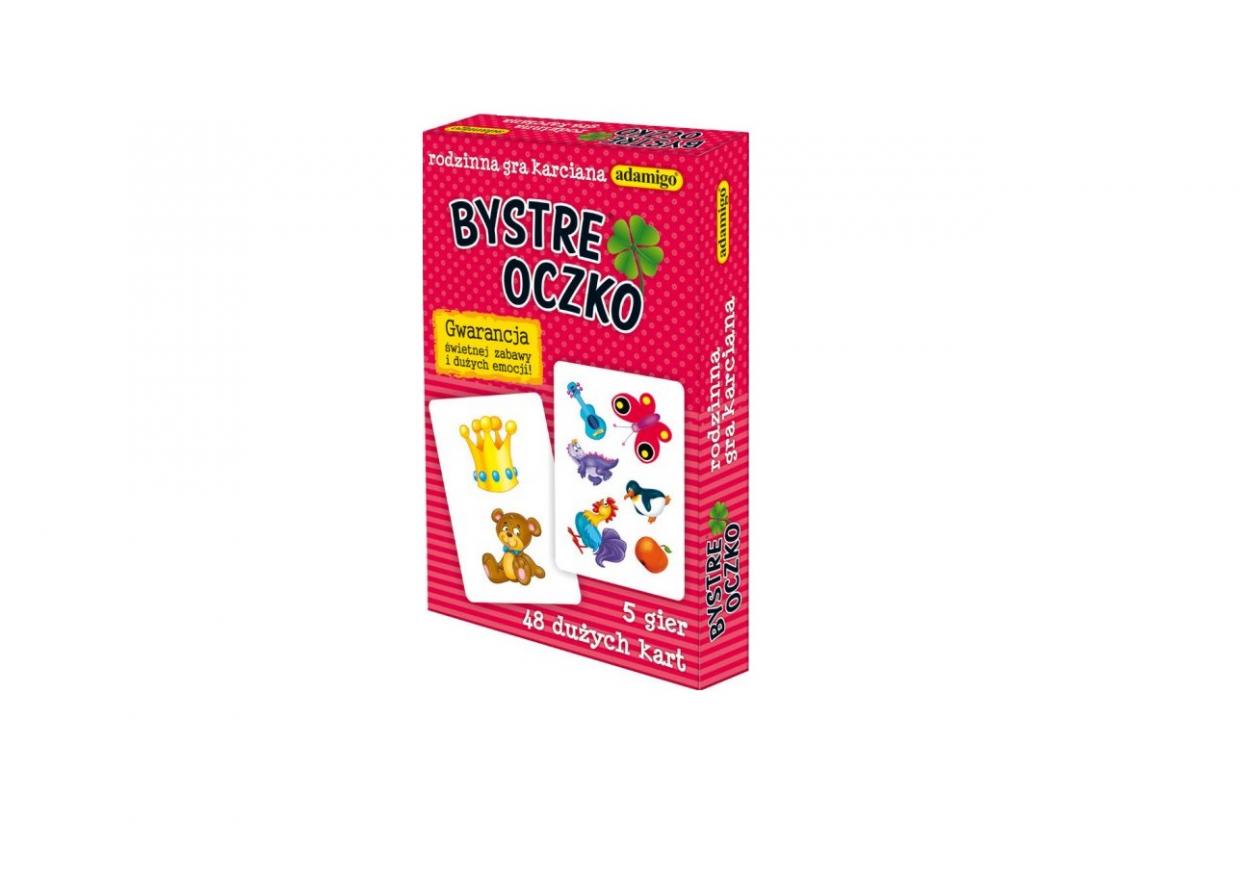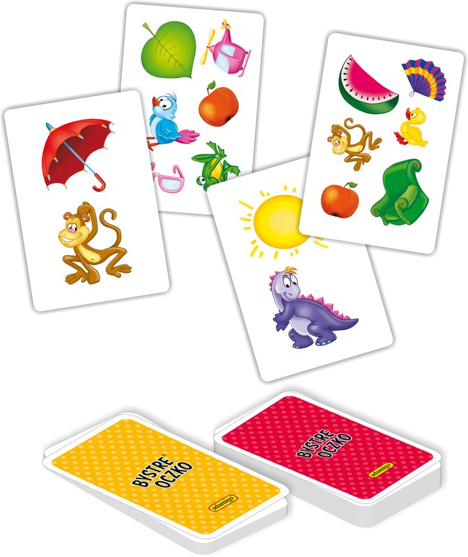 Zestaw zawiera 48 kart o wym. 11 cm x 7,4 cm oraz instrukcje z opisem pięciu wesołych gier rodzinnych. Gry zawierają elementy edukacyjne. Podczas zabawy gracze ćwiczą spostrzegawczość, pamięć i refleks.