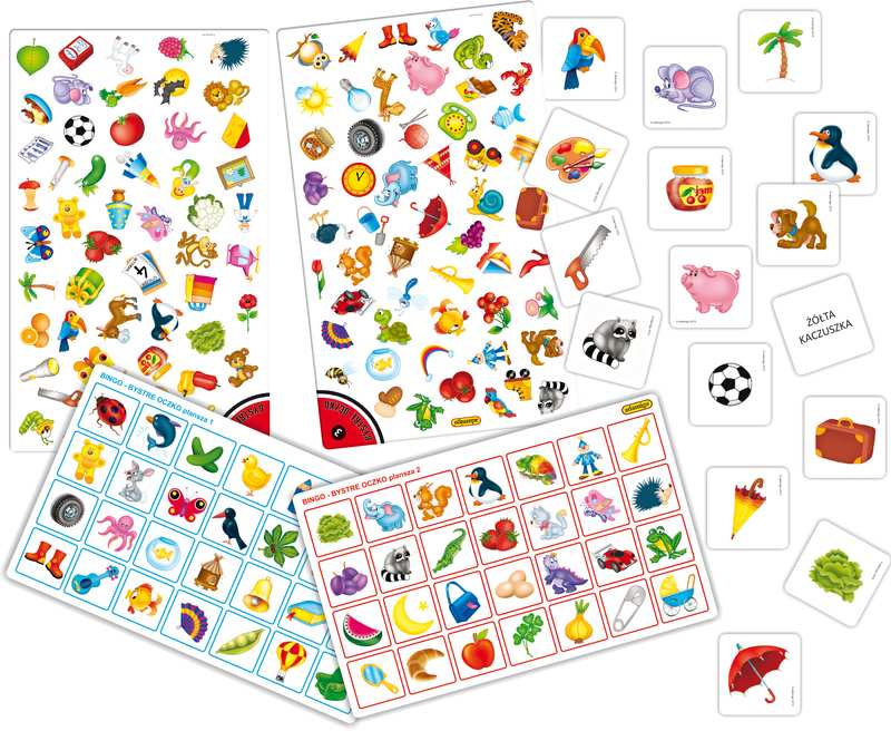 Chociaż w instrukcji zamieszczamy 8 propozycji gier, zestaw można wykorzystać na wiele sposobów. „BYSTRE OCZKO” polecamy do zabawy i edukacji zarówno w gronie rodzinnym, jak i w przedszkolach oraz szkołach w klasach 0-II. Gry polegają na odszukaniu na planszy takiego samego obrazka, jaki widnieje na wylosowanej przez osobę prowadzącą grę, plakietce. Na drugiej stronie plakietki wyszczególniona jest nazwa i krótki opis przedmiotu.