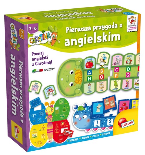 Ten zestaw edukacyjnych zabaw został stworzony do nauki angielskiego dla dzieci w wieku przedszkolnym z wykorzystaniem podstawowych treści dydaktycznych. Dziecko może układać trzy zabawne, dużego rozmiaru puzzle w kształcie motyla i dwóch gąsienic. Poprzez dopasowywanie elementów tych puzzli dziecko nauczy się rozpoznawać litery, słowa, cyfry wraz z ilościami, kształty i kolory.