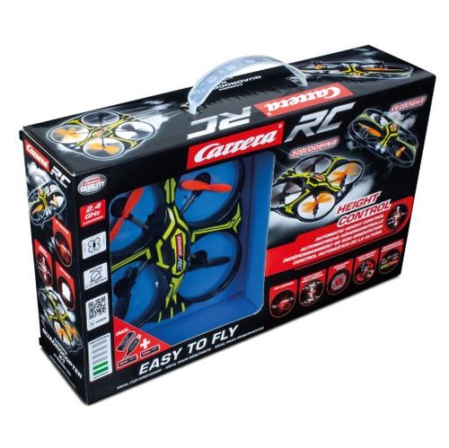 Qaudrocopter zdalnie sterowany przeznaczony dla początkujących do zabawy wewnątrz i na zewnątrz pomieszczeń. Wbudowany żyroskop 4 AXIS GYRO-SYSTEM ułatwia precyzyjne sterowanie we wszystkich kierunkach. W zależności od umiejętności możemy wybrać tryb dla początkujących lub bardziej zaawansowanych. Funkcja lotu 3D pozwala na efektowne powietrzne akrobacje : pętle i przewroty. Wyposażony w osłonę wirników chroniącą przed przypadkowymi uszkodzeniami. Zabawka posiada diody LED. W zestawie ładowarka, komplet baterii oraz wbudowany wydajny akumulator Li-Po W zestawie znajdują się dwa zapasowe silniczki do samodzielnej wymiany. Jest to ulepszona wersja poprzedniego modelu wzbogacona o funkcję kontroli wysokości oraz tryb headless mode, króry ułatwia sterowanie i powrót zabawką w przypadku utraty kontroli. Obudowa wykonana w odpornego tworzywa. Średnica wirników : 5,7 cm Wymiary zabawki : 17,7 cm / 16,9 cm Częstotliwość : 2,4 GHz ? 4 kanały, Digital Proportional Zasięg : 60 m Czas ładowania : 60 minut Czas zabawy : 7 minut