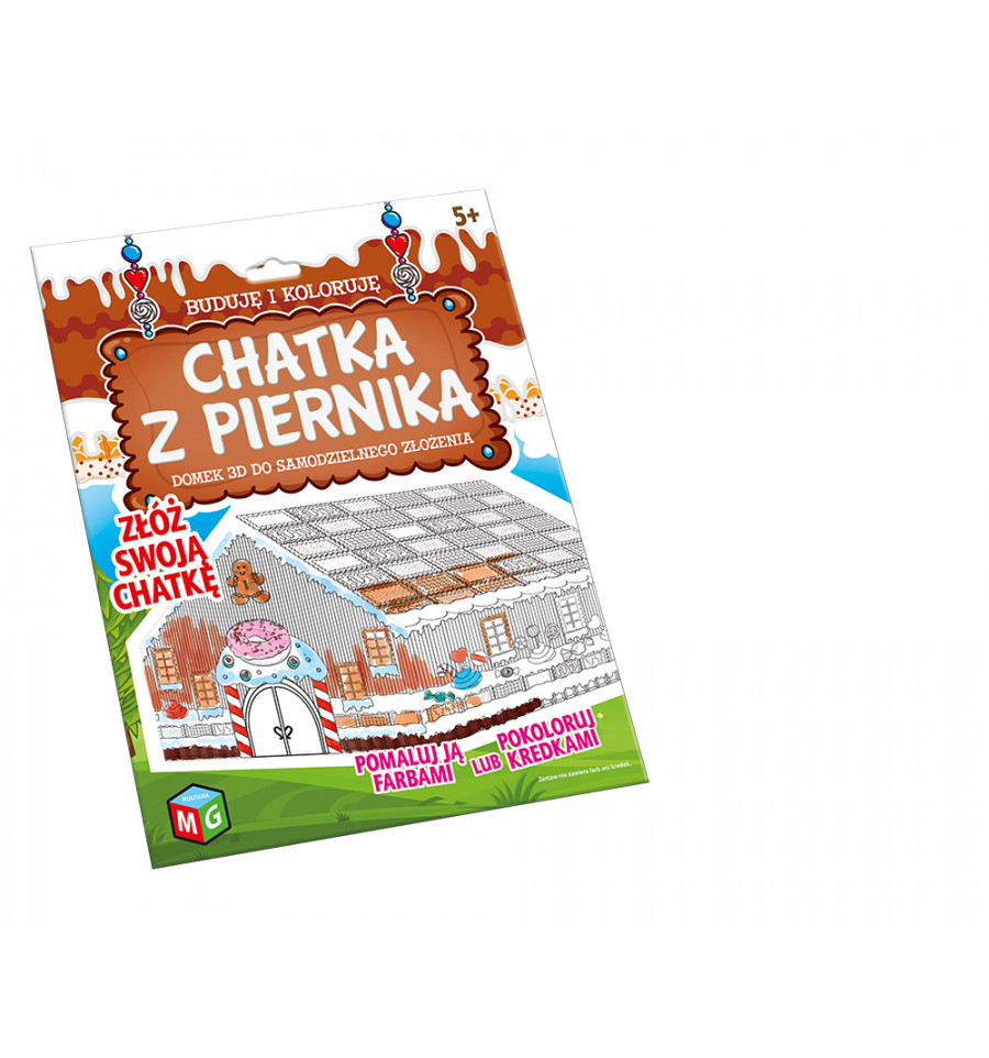 Buduję i koloruję Chatka z piernika to fantastyczna zabawa dla młodych artystów. Chatka z piernika 3D do samodzielnego złożenia, rozwija kreatywność. Chatka po złożeniu może zostać pomalowana kredkami lub farbami. Zestaw nie zawiera farb oraz kredek.