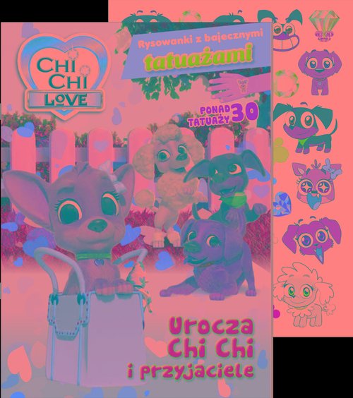 Rysowanki z bajecznymi tatuażami to fantastyczna książka z ulubionymi bohaterami, w której dziecko znajdzie wiele kolorowanek i zadań do wykonania. Do publikacji dołączone są, uwielbiane przez maluchy, zmywalne tatuaże, które wywołają uśmiech na twarzy każdego fana Chi Chi love!