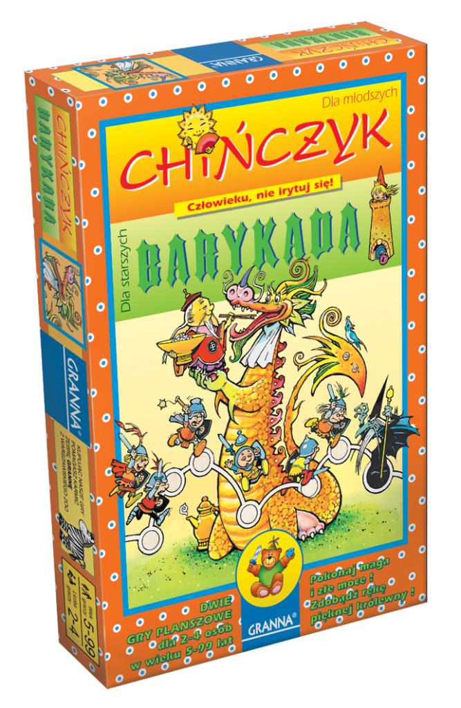 Barykada to gra wymyślona w Niemczech w 1960 roku. Tu nie wystarczy tylko szczęście w rzucaniu kostką! Żeby uwolnić piękną księżniczkę, trzeba się wykazać sporą pomysłowością w walce z licznymi niebezpieczeństwami, które na drodze porozstawiał zły mag Czarosiej. Pokonać trzeba wiedźmę Pytlichę, i rozbójnika Łupiwoja, i nawet złośliwego diabełka Topiełka. A przecież są jeszcze rywale, którzy stale depczą nam po piętach…