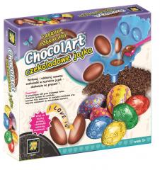 Najważniejszym symbolem Wielkanocy obok baranka jest jajko. Dlatego w sklepach możesz kupić różnego rodzaju pisanki i wydmuszki. A nie lepiej w zaciszu domowym stworzyć własne, oryginalne ozdoby wielkanocne? Mieć satysfakcję, że się samemu coś zrobiło?Ciekawą propozycją jest zestaw ChocolArt, który pozwala na wykonanie czekoladowych jajek! Idealny na Wielkanoc i nie tylko.Rozpuść czekoladę, wlej ją do magicznych foremek i powstały odlew zawiń w kolorowe papierki. Czeka Cię słodka zabawa, że aż palce lizać!Jak się okazuje do produkcji jajek nie potrzebna jest kura, wystarczy wyobraźnia. A takżeposkromienie łakomstwa, bojeśli zje się składniki potrzebne do przygotowaniawielkanocnych jajek to wtedy dopiero zaczynają się... jaj(k)a.W zestawie ChocolArt znajdujesz ciekawy dodatek - sekretne wiadomości - które możesz umieścić we wnętrzu jajek. Osoba obdarowana na Wielkanoc takim prezentem będzie zachwycona.Jak się robi czekoladowe jajka? Z jakich składników? Jak długo to trwa? Dzięki zestawowi ChocolArtznajdziesz odpowiedzi na te nurtujące pytania i sam staniesz się czekoladowym ekspertem.Wykonaj i udekoruj na Święta słodkości w kształcie jajek. Przekonaj się ja(j)ka to frajda!ZAWARTOŚĆ: ok. 225 gram brązowego kakao, specjalne foremki do odlewania czekoladek, kolorowa folia aluminiowa do zawijania czekoladek, sekretne wiadomości do umieszczenia wewnątrz.