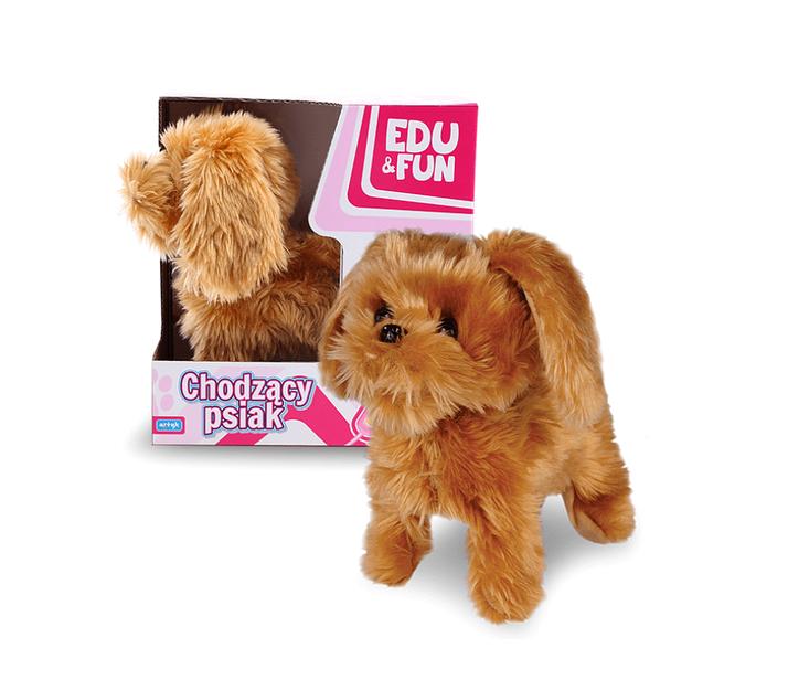 Chodzący Psiak na smyczy Edu&Fun sterowany na pilota, chodzi do przodu i do tylu, radośnie piszczy. Przyjemny w dotyku.