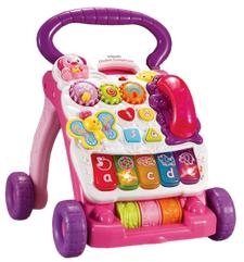 Chodzik-Gawędziarz w innowacyjny sposób łączy funkcje chodzika i panelu edukacyjnego, wspierając rozwój dziecka w wieku 6-30 miesięcy. Koła z bieżnikiem, wygodny uchwyt i trwałe wykonanie zapewnia dziecku wsparcie przy nauce stawiania pierwszych kroków, a kolorowy, zdejmowany panel edukacyjny może w każdej chwili służyć jako oddzielna zabawka. Wariant zabawy wybiorą ruchome skrzydełka motyla! Chodzik wyposażony jest w migoczące klawisze pianina z literkami, które po naciśnięciu wydają wesołe dźwięki, dodatkowo ucząc literek i nazw. Wypukłe przyciski z kształtami i cyframi, kręcące się koła, obrotowe grzechotki i zdejmowana słuchawka-grzechotka wspomagają poznawanie świata i dostarczają bodźców potrzebnych dziecku. Chodzik zapozna malucha z pierwszymi słowami, literami, cyframi i kształtami, zachęca również do odgrywania ról. Zabawka wspomaga rozwój językowy, motoryczny i sensoryczny dziecka. Kolorowe świecące klawisze przykuwają uwagę dziecka. Przyjazny głos i wesołe melodie rozwijają wrażliwość muzyczną i słuchową dziecka, a różnorodne faktury i materiały zabawki umożliwiają maluszkowi poznawanie świata przez dotyk.