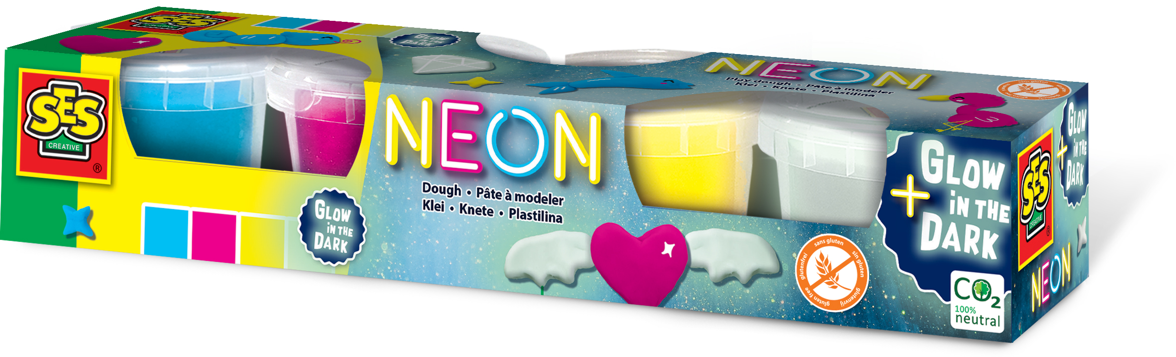 Łał! Te kolory ciasto masy do zabawy są bardzo jasne! Trzy neonowe kolory i jeden z kolorów świeci w ciemności! Super zabawa!