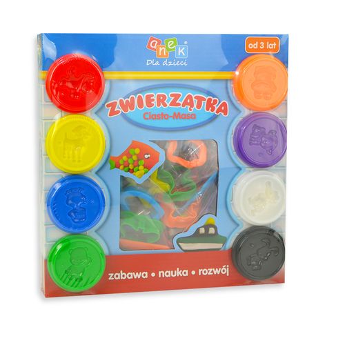 Zestaw zawiera masę plastyczną 8x25g oraz foremki w kształcie zwierząt.