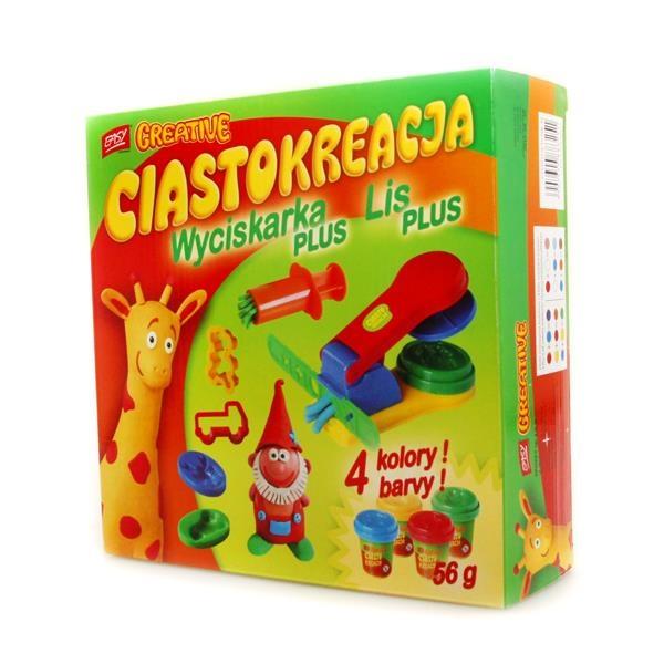 Masa plastyczna Ciastokreacja pozwoli Ci na długie godziny zabawy w modelowanie!. Możesz wykonać co tylko podpowie Ci wyobraźnia. Umieść masę w zabawce. Uważaj żeby nie było jej za dużo. Naciskając powoli spowodujesz, że masa wyciśnie się, tworząc fantastyczne kształty. Wypróbuj różne nasadki - zobacz, co możesz uzyskać za ich pomocą. Jeśli użyjesz na raz dwóch lub więcej kolorów, otrzymasz wielobarwne wzory. Możesz też stworzyć nowe, własne barwy, mieszając kolory z kubeczków. Przyjemnej zabawy!