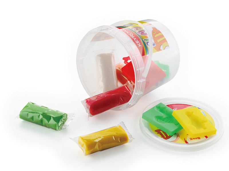 zestaw 6 kolorów ciastoliny z foremkami w praktycznym pojemniku