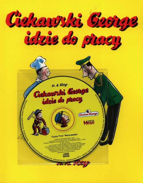 Druga z serii klasycznych opowieści o ulubieńcu dzieci Ciekawskim George'u, z tekstem i ilustracjami autorstwa Margret i H.A Reyów. Tym razem niesforna małpka, po ucieczce z zoo, trafia do miasta gdzie spotyka ją wiele przygód. Dostaje pracę czyściciela okien w drapaczu chmur. Niestety Ciekawski George co chwila wpada w tarapaty. Na szczęście w końcu odnajduje swego przyjaciela pana w żółtym kapeluszem i zostaje gwiazdą filmową.Zestaw książka ,,Ciekawski George idzie do pracy"" z audiobookiem ułatwi i uatrakcyjni każdemu dziecku kontakt z przygodami niesfornej małpki. Nagraniu tekstu w wykonaniu Piotra Warszawskiego towarzyszą efekty dźwiękowe i muzyka, dzięki którym jednoczesne oglądanie i słuchanie książki rozwija wyobraźnię dziecka, oraz wspiera naukę czytania.