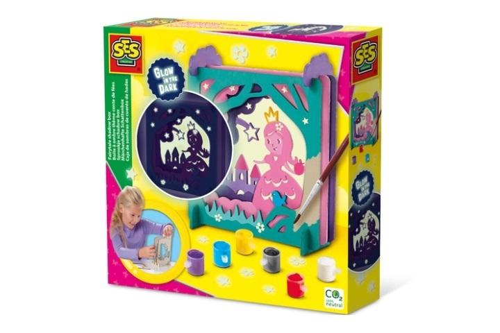 Świat księżniczek zamknięty w małym pudełeczku składa się z różnych warstw, które można pomalować według własnej kreatywności. Przyklejając naklejki świecące w ciemności otrzymujesz wyjątkowe, lśniące pudełko z cieniami,