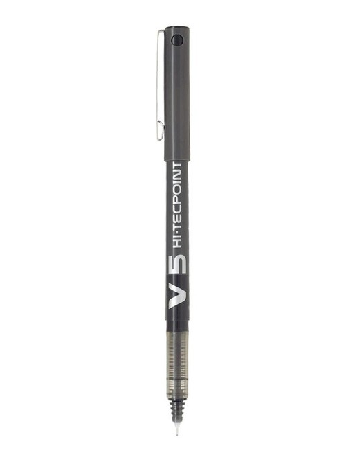 Cienkopis kulkowy z obudową w kolorze tuszu i okienkiem pozwalającym na kontrolę jego zużycia. Posiada bezpieczną wentylową skuwkę z metalowym klipem. Możliwość pisania po każdym rodzaju papieru. Polecane dla osób leworęcznych. Cienkopis V5 posiada igłową końcówkę, dzięki której linia pisania jest bardzo precyzyjna. Grubości linii pisania: 0,30 mm, długości linii pisania: 1700 m. Występuje w kolorach czarny, czerwony, niebieski, zielony.