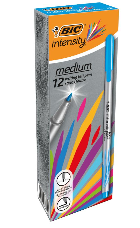 Cienkopisy Intensity medium w kolorze turkusowym. W opakowaniu zbiorczym znajduje się 12 sztuk.