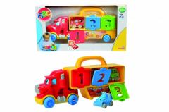 Uśmiechnięta ciężarówka w zestawie z trzema samochodzikami.