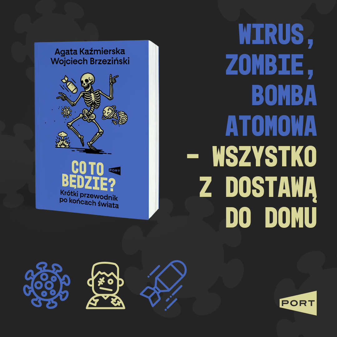 Wojciech Brzeziński i Agata Kaźmierska - laureaci Grand Press Digital And Technology - w brawurowy sposób i z ogromną dawką humoru analizują możliwe scenariusze końca świata. Od zagrożeń płynących ku nam z kosmosu, epoki lodowcowe, przez superwulkany, pandemie, zombie, aż po przypadkowe stworzenie czarnej dziury, bunt robotów, czy wyłączenie internetu.