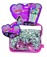 Różowa, błyszcząca torebka do pokolorowania, z 4 permanentnymi markerami.