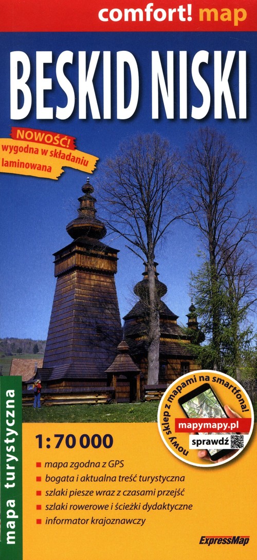 Doliny nieistniejących już wsi, wpisana na listę UNESCO cerkiew św. Paraskewy w Kwiatoniu, renesansowy dwór obronny w Szymbarku, cmentarze z okresu I wojny światowej czy skansen łemkowski w Zyndranowej to tylko niektóre interesujące miejsca w Beskidzie Niskim. Dwustronnie laminowana, wygodna w składaniu mapa turystyczna Beskidu Niskiego pomoże odnaleźć ich znacznie więcej. Publikacja została opracowana we współpracy z doświadczonymi krajoznawcami z regionu.