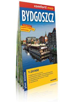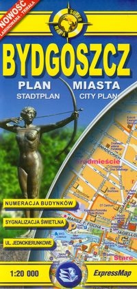 Dwustronnie laminowany, wygodny w składaniu plan Bydgoszczy w skali 1:20 000. - szczegółowy rysunek zabudowy wraz z numeracją budynków wzdłuż ulic i na osiedlach - linie autobusowe i tramwajowe wraz z przystankami - sygnalizacja świetlna, ulice jednokierunkowe, parkingi - bogata treść turystyczna, m.in.: zabytki, muzea, szlaki turystyczne, hotele i inne istotne obiekty - budynki użyteczności publicznej, centra handlowe - szczegółowy plan centrum w skali 1:10 000 (1cm - 100m) - skorowidz ulic