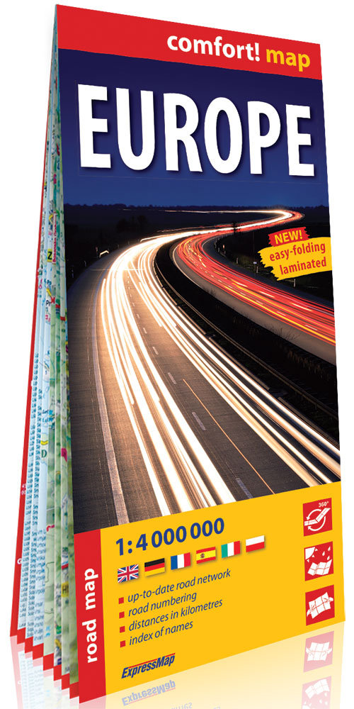Z dwustronnie laminowaną, wygodną w składaniu mapą samochodową Europy podróż po kontynencie będzie prawdziwą przyjemnością.