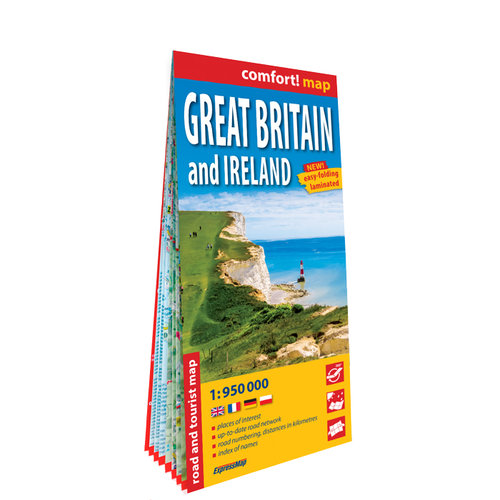 Tajemnicze budowle megalityczne w Stonehenge, majestatyczny zamek w Edynburgu, a może malownicze jeziora w parku narodowym Lake District? Dwustronnie laminowana, wygodna w składaniu mapa samochodowo-turystyczna Wielkiej Brytanii i Irlandii pomoże Ci dotrzeć do wszystkich interesujących atrakcji.