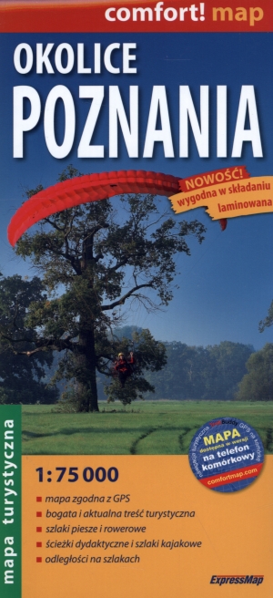 Dwustronnie laminowana, wygodna w składaniu mapa turystyczna Okolic Poznania, mapa opracowana we współpracy z krajoznawcami z regionu, dogodna zarówno dla pieszego, jak i rowerzysty, skala 1:75 000 (1 cm - 750 m), bogata treść turystyczna, m.in.: szlaki piesze i rowerowe oraz ścieżki dydaktyczne i spacerowe, odległości na szlakach, wyciągi i trasy narciarskie, muzea, zabytki i inne interesujące obiekty, hotele, schroniska młodzieżowe, kempingi, parki narodowe i krajobrazowe, rezerwaty przyrody, atrakcje przyrodnicze, mapa zgodna z GPS - współrzędne geograficzne w układzie WGS-84.