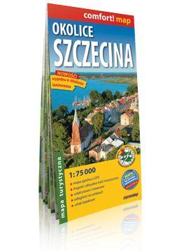 Dwustronnie laminowana, wygodna w składaniu mapa turystyczna okolic Szczecina, zasięgiem obejmuje tereny od Zalewu Szczecińskiego na północy i Gryfino na południu, na zachodzie do Niemieckiego Eggesin i Stargard Szczeciński na wschodzie, mapa opracowana we współpracy z doświadczonymi krajoznawcami z regionu, dogodna zarówno dla pieszego, jak i rowerzysty skala 1:75 000 (1 cm - 750 m), bogata treść turystyczna, m.in.: szlaki piesze i rowerowe, szlaki kajakowe, linie żeglugi pasażerskiej, odległości na szlakach, muzea, zabytki i inne interesujące obiekty, parki narodowe i krajobrazowe, rezerwaty przyrody, atrakcje przyrodnicze, parkingi, stacje benzynowe, poziomice pokazujące urozmaicone ukształtowanie terenu, mapa zgodna z GPS - współrzędne geograficzne w układzie WGS-84.