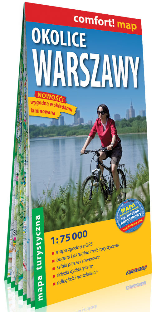 Dwustronnie laminowana, wygodna w składaniu mapa turystyczna okolic Warszawy obejmuje swoim zasięgiem obszar od Serocka na północy, po Tłuszcz i Kołbiel na wschodzie, Górę Kalwarię i Mszczonów na południu oraz Teresin i Kampinos na zachodzie. Publikacja została opracowana we współpracy z doświadczonymi krajoznawcami z regionu.