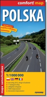 Dwustronnie laminowana, trwała i wygodna w użyciu mapa samochodowa Polski. Stan dróg 2011, odcinki w budowie, szczegółowa kategoryzacja i numeracja dróg, wyróżnienie płatnych odcinków autostrad, odległości drogowe w kilometrach, promy samochodowe, plastyczna rzeźba terenu, lasy, parki narodowe, skorowidz miejscowości.