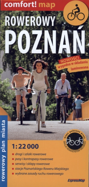 Rowerowy Poznańlaminowany rowerowy plan miastaDwustronnie laminowany, trwały i łatwy w użyciu rowerowy plan Poznania plan opracowany we współpracy z aktywistami z Sekcji Rowerzystów Miejskich bogata treść rowerowa: turystyczne szlaki rowerowe, wydzielone drogi rowerowe, ciągi pieszo-rowerowe, pasy i kontrapasy rowerowe, strefy piesze z dopuszczonym ruchem rowerowym, ulice jednokierunkowe dopuszczone do dwukierunkowego ruchu rowerowego stacje rowerów miejskich, parkingi rowerowe, serwisy i sklepy rowerowe, samoobsługowe stacje naprawy rowerów najważniejsze przepisy kodeksu drogowego dotyczące rowerzystów szczegółowy rysunek zabudowy linie autobusowe i tramwajowe wraz z przystankami sygnalizacja świetlna, ulice jednokierunkowe treść turystyczna, m.in.: zabytki, muzea i inne istotne obiekty budynki użyteczności publicznej, centra handlowe szczegółowy plan centrum w skali 1:10 000 (1 cm - 100 m) skorowidz ulic
