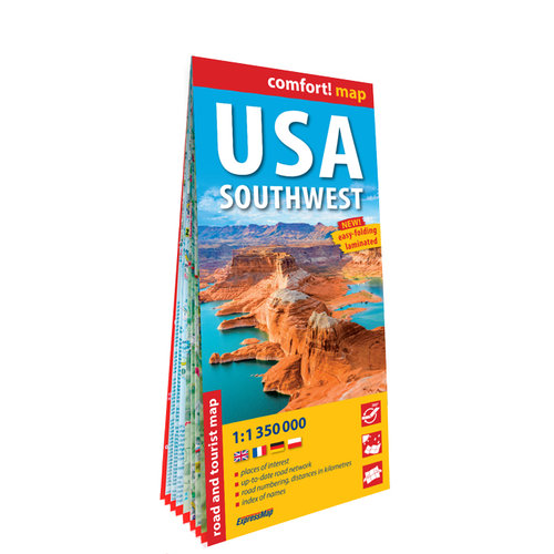 Od słonecznych plaż Los Angeles, przez słynną Aleję Gwiazd, po efektowny most Golden Gate i kasyna Las Vegas. Cuda natury: zachwycające wodospady parku Yosemite, spektakularny Wielki Kanion i westernowa sceneria Doliny Monumentów. Dwustronnie laminowana, wygodna w składaniu mapa samochodowo-turystyczna będzie niezastąpionym towarzyszem podróży po południowo-zachodniej części Stanów Zjednoczonych: Kalifornii, Nevadzie, Arizonie i Utah.