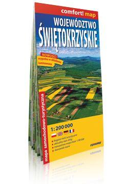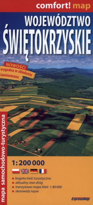 Wygodna w składaniu, dwustronnie laminowana mapa województwa świętokrzyskiego&bullaktualny stan sieci drogowej, a także drogi w budowie i planowane do 2016r.&bullautostrady i drogi ekspresowe z nazwami węzłów&bullkrajowa i międzynarodowa numeracja dróg&bullodległości drogowe&bullstacje paliw z podziałem na sieci&bullbogata treść turystyczna&bullgranice parków narodowych i krajobrazowych, miejscowości atrakcyjne turystycznie&bullplastyczna rzeźba terenu&bulltranzytowa mapa Kielc w skali 1:80 000&bullskorowidz miejscowości z terenu Polski wraz z informacją o województwie i powiecie