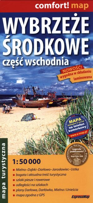 Dwustronnie laminowana, wygodna w składaniu mapa turystyczna polskiego wybrzeża Morza Bałtyckiego obejmująca odcinek od Sarbinowa po Ustkę (obejmuje m. in. Sarbinowo, Mielno i Unieście, Łazy, Dąbki, Darłowo i Darłówko, Jarosławiec, Ustkę sięgając wgłąb lądu po Koszalin, Sławno i Słupsk). - mapa opracowana we współpracy z doświadczonymi krajoznawcami z regionu - dogodna zarówno dla pieszego, jak i rowerzysty skala 1:50 000 (1 cm - 500 m) Bogata treść turystyczna, m.in.: - szlaki piesze i rowerowe oraz ścieżki dydaktyczne i spacerowe - odległości na szlakach - muzea, zabytki i inne interesujące obiekty - parki krajobrazowe, rezerwaty przyrody, atrakcje przyrodnicze - poziomice pokazujące ukształtowanie terenu - mapa zgodna z GPS - współrzędne geograficzne w układzie WGS-84 - plany miejscowości nadmorskich: Darłowa i Darłówka oraz Mielna i Unieścia