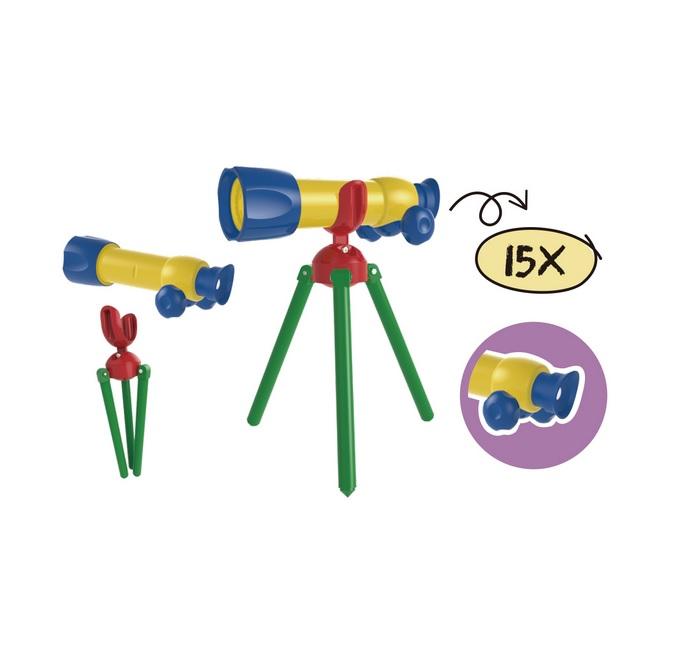 Zabawa w obserwację nieba i otoczenia, dziecko zapoznaje się z działanie teleskopu. Zestaw zawiera: