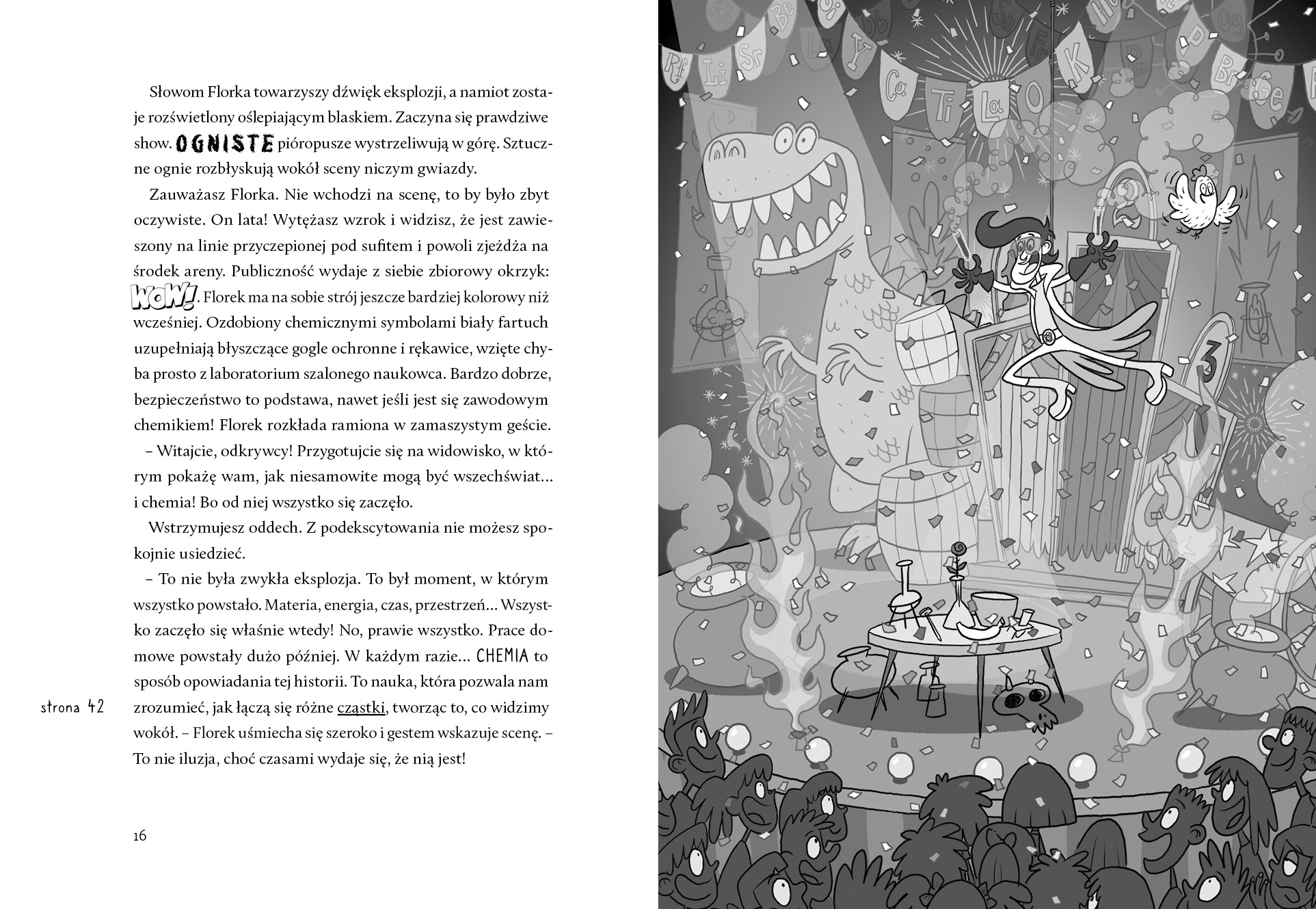 Patrz – nadchodzi Florek, zwariowany naukowiec, z kurą na ramieniu. Wokół parujące kotły i kolorowe mikstury w dziwnych naczyniach. To znak, że za chwilę zacznie się prawdziwie wybuchowe show.