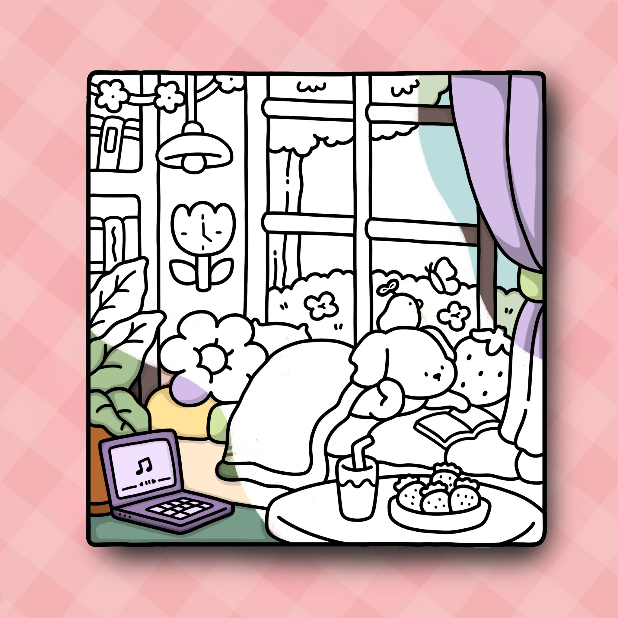 Zrelaksuj się i pozwól sobie na moment kreatywności pośród małych ogródków, domków czy kawiarenek należących do uroczego pieska i jego nie mniej słodkich znajomych.