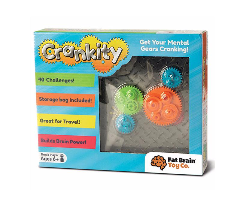 Gra logiczna Crankity od Fat Brain Toy Co rozrusza Twoje szare komórki. Cel gry jest prosty - rozwiąż układankę pomiędzy małym czerwonym i żółtym kółeczkiem. Gdy wszystkie kółeczka się zazębią, będzie można je wprowadzić w ruch! Crankity to gra, która rozwija inteligencję przestrzenno-wizualną, myślenie logiczne, zdolność kreatywnego myślenia.