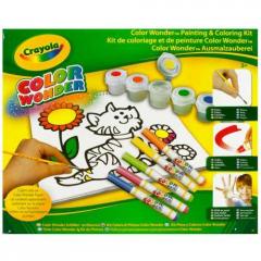 W środku znajdziecie blok z kartkami i zeszyt z kolorowankami. Widnieją na nich np. duże zwierzątka, które zaciekawią Twojego malucha. Za pomocą flamastrów i farbek Color Wonder, dołączonych do zestawu, dziecko może zamienić czarnobiałe rysunki w kolorowe dzieła. Nie przejmuj się tym, że dziecko poplami sobie ubrania bądź skórę. Flamastry i farbki są łatwo zmywalne a ich kolory intensywne.