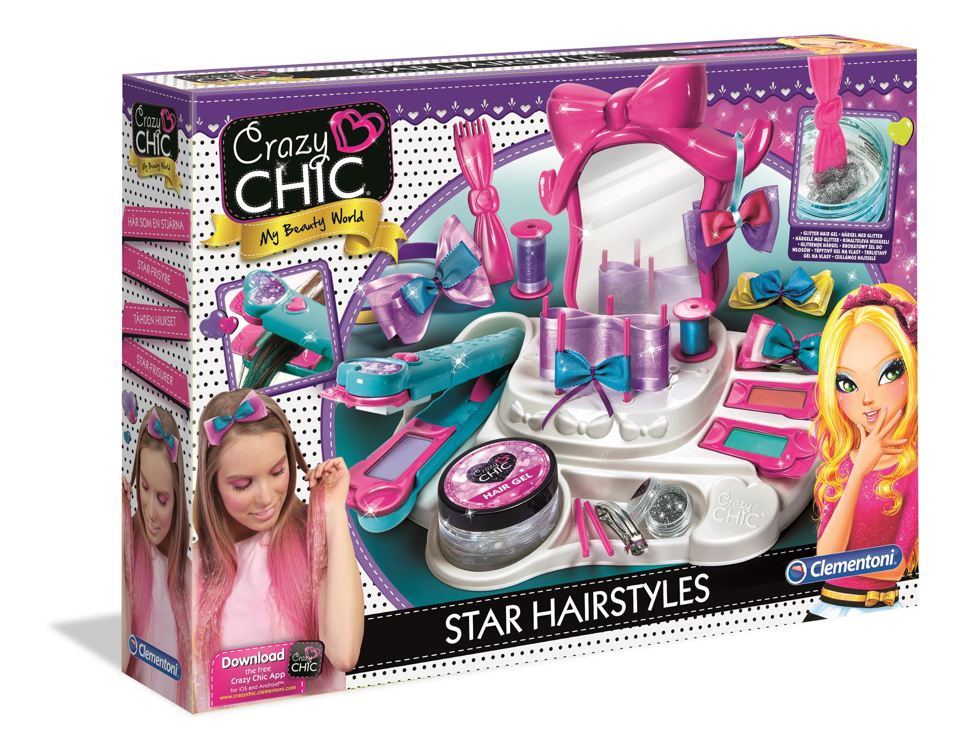 - Salon fryzjerski ma duże lustro, paletę do farbowania włosów i fantastyczny błyszczący żel. W zestawie z klipsami i paletą akcesoriów.