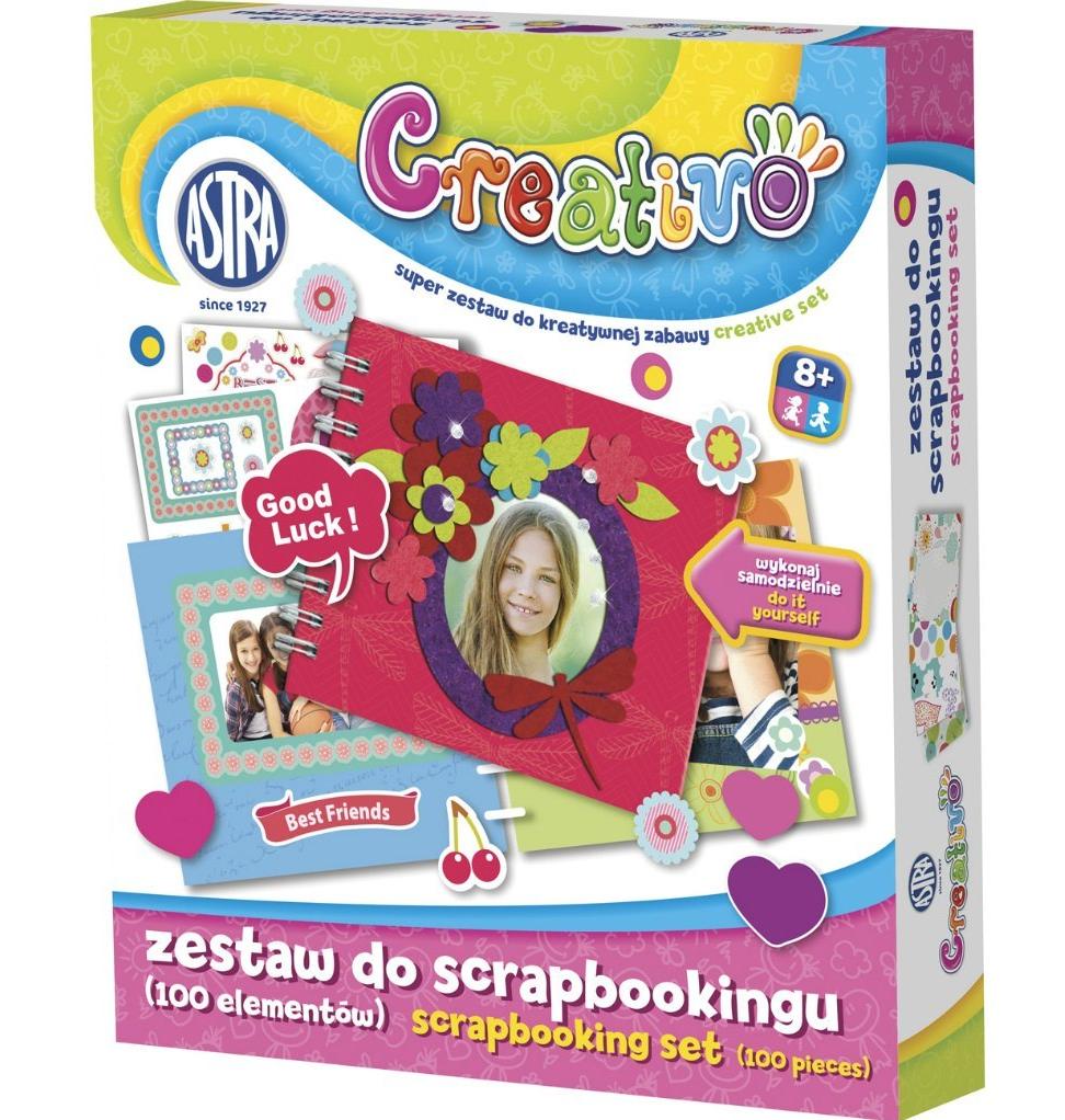 Zestaw przeznaczony do kreatywnego ozdabiania pamiętnika. Zawartość zestawu: pamiętnik w twardej oprawie- 10 sztron, nożyczki, klej, 20 mkolorowych kartek, naklejki z filcu, naklejki klejnoty, naklejki brokatowe, szablon plastikowy, flamaster.