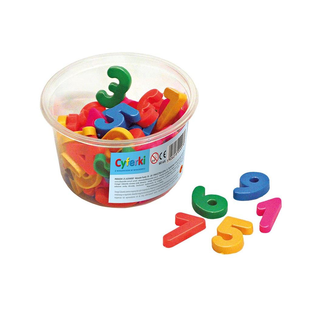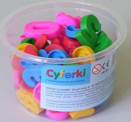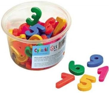 Zbiór 60 sztuk cyferek z magnesami, które mozesz przyczepiac na lodówkę czy tablicę magnetyczną.