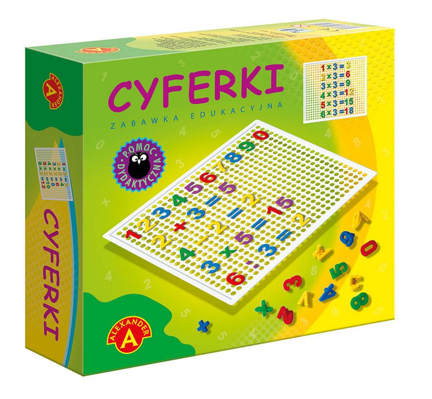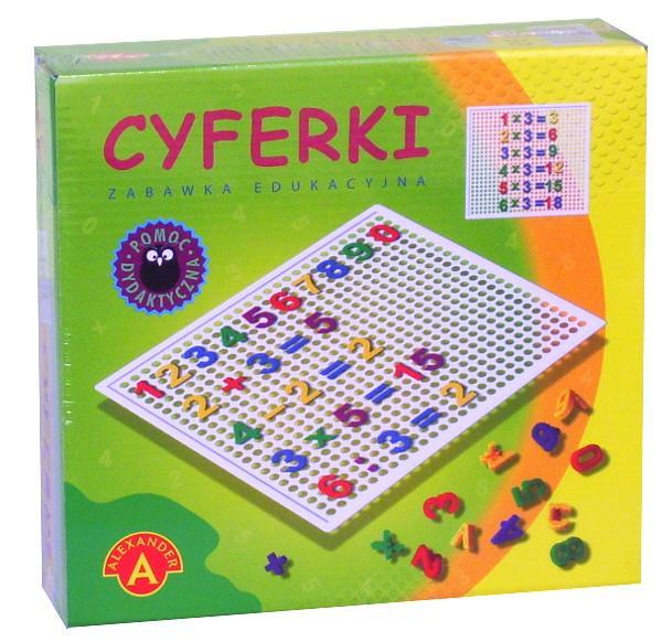 ,,Cyferki w pudełku"" to zbiór kolorowych cyferek, z których każda posiada element umożliwiający wpinanie ich w otwory ażurowej tablicy. Ta prosta zabawa jest doskonałym pretekstem do nauki znaczenia i wartości cyfr, a następnie do układania i rozwiązywania prostych zadań matematycznych. Zabawka uczy również cierpliwości i rozwija sprawność manualną.