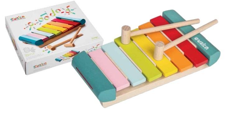 To wspaniały zabawkowy instrument muzyczny, który zachwyci Twojego młodego melomana. Każdy takt ksylofonu jest nastrojony w specjalny sposób, dzięki czemu uderzając w niego pałeczkami i młotkami uzyskuje się przyjemny dźwięk. Intuicyjnie prosty i łatwy w użyciu ksylofon przyczyni się do rozwoju słuchu muzycznego, motoryki małej, koordynacji ruchów i myślenia asocjacyjnego.