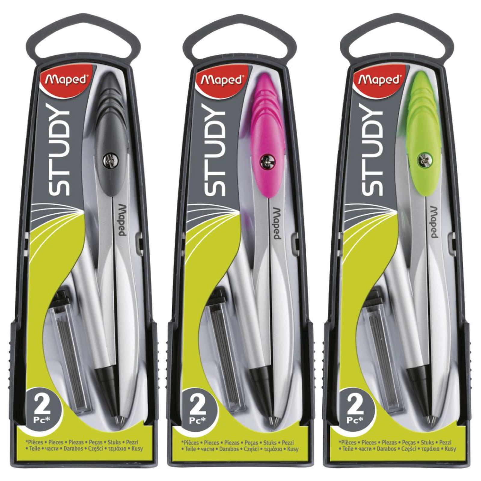 Metalowy cyrkiel STUDY w plastikowym etui z ołówkiem automatycznym, opakowanie zawiera cyrkiel STUDY oraz jedno pudełko zapasowych grafitów grubości 0,5 mm. JS 1 szt.