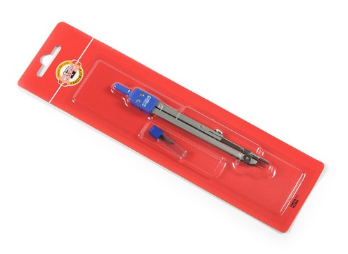 Zestaw zawiera cyrkiel szkolny z plastikowym uchwytem oraz metalowymi ramionami oraz zapasowy grafit.